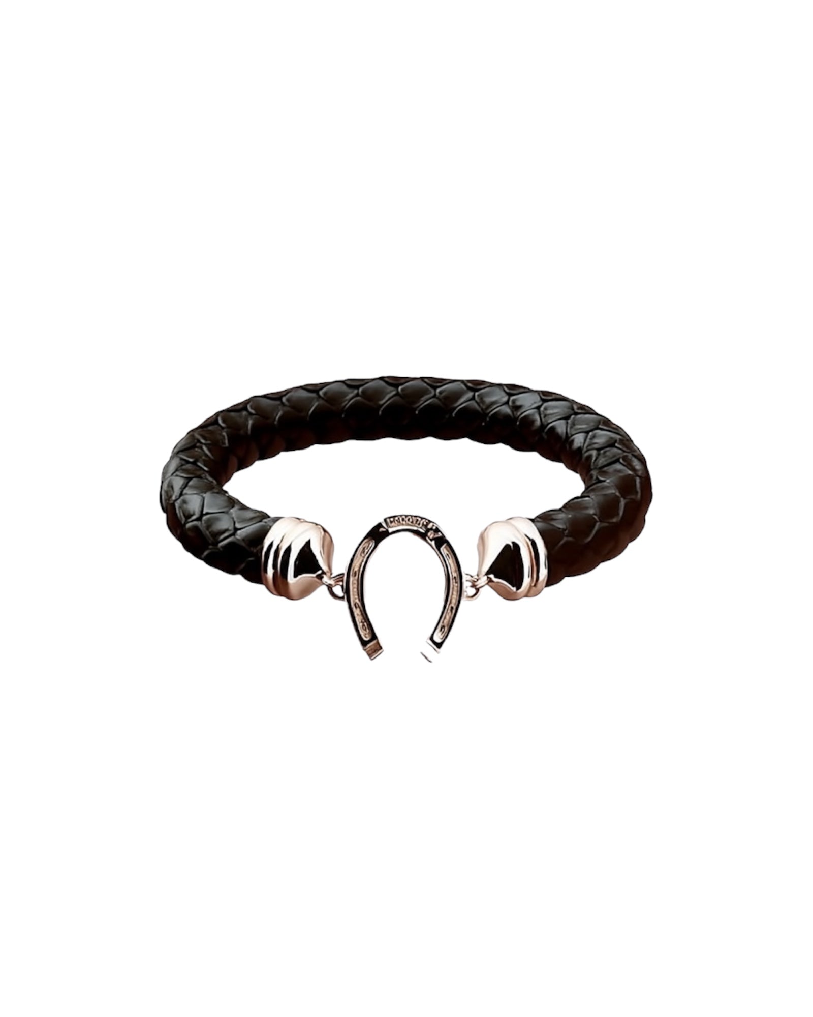 A pure sliver equestrian bracelet plated with a goldish sliver.