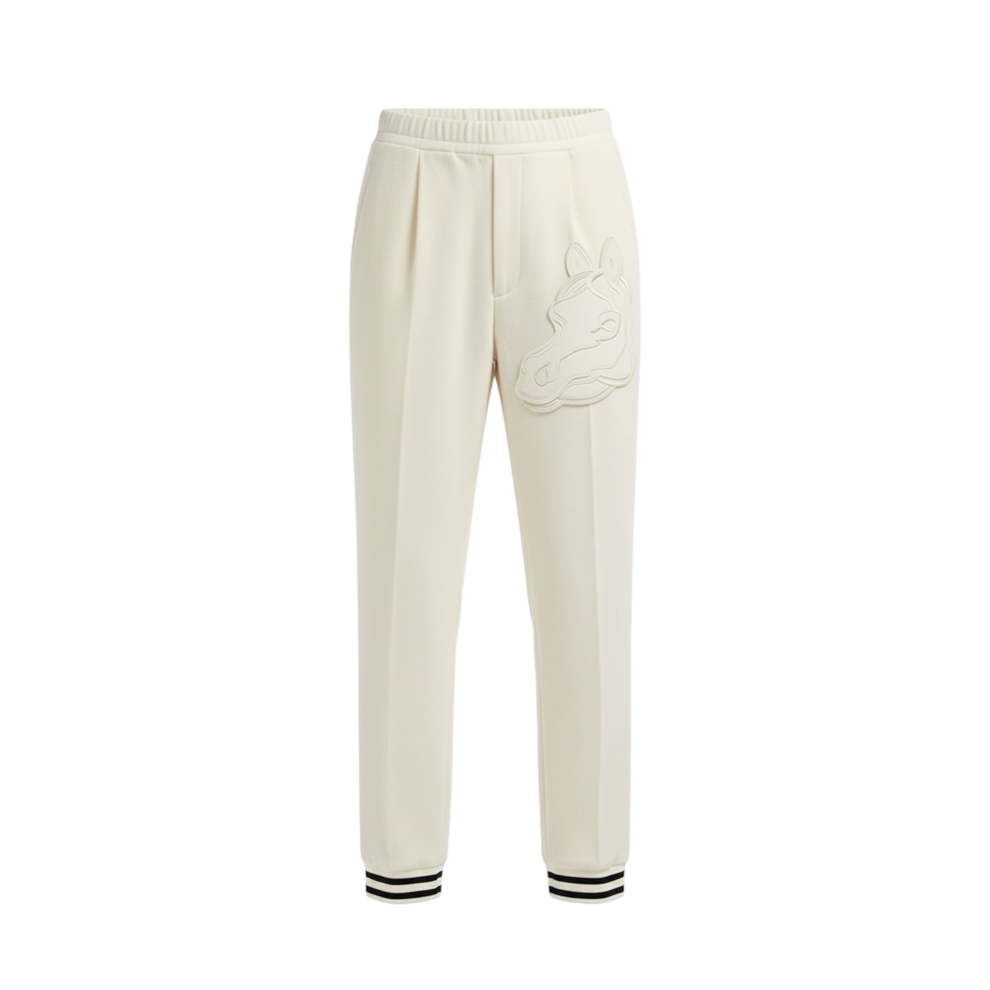 Crafted for comfort and style, these joggers are a must-have. Made of 100% cotton, they are soft and breathable with a tonal embroidered horse head on the upper left leg. The elasticized waistband and cuffed ankles with a black and white stripe create a perfect blend of comfort and design. Made in China.