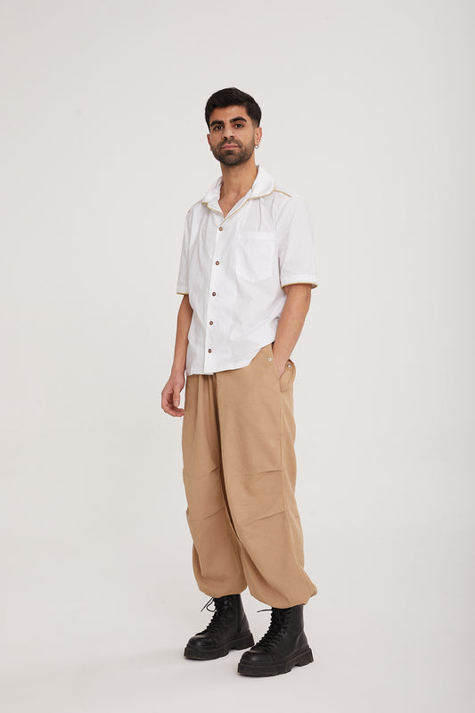 WHITE COTTON GOLDEN STRIPE SHIT