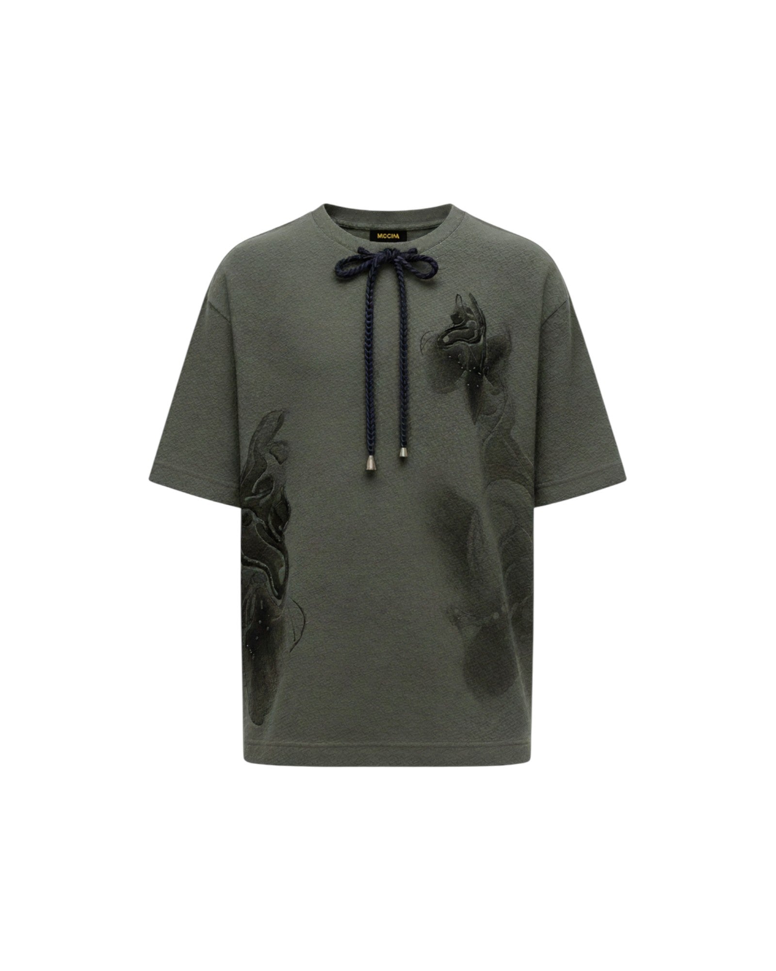 Relaxed fit featuring a dark desaturated green. swirl print. Crafted from heavyweight cotton for a premium feel and durability. Perfect for everyday comfort and a stylish look.