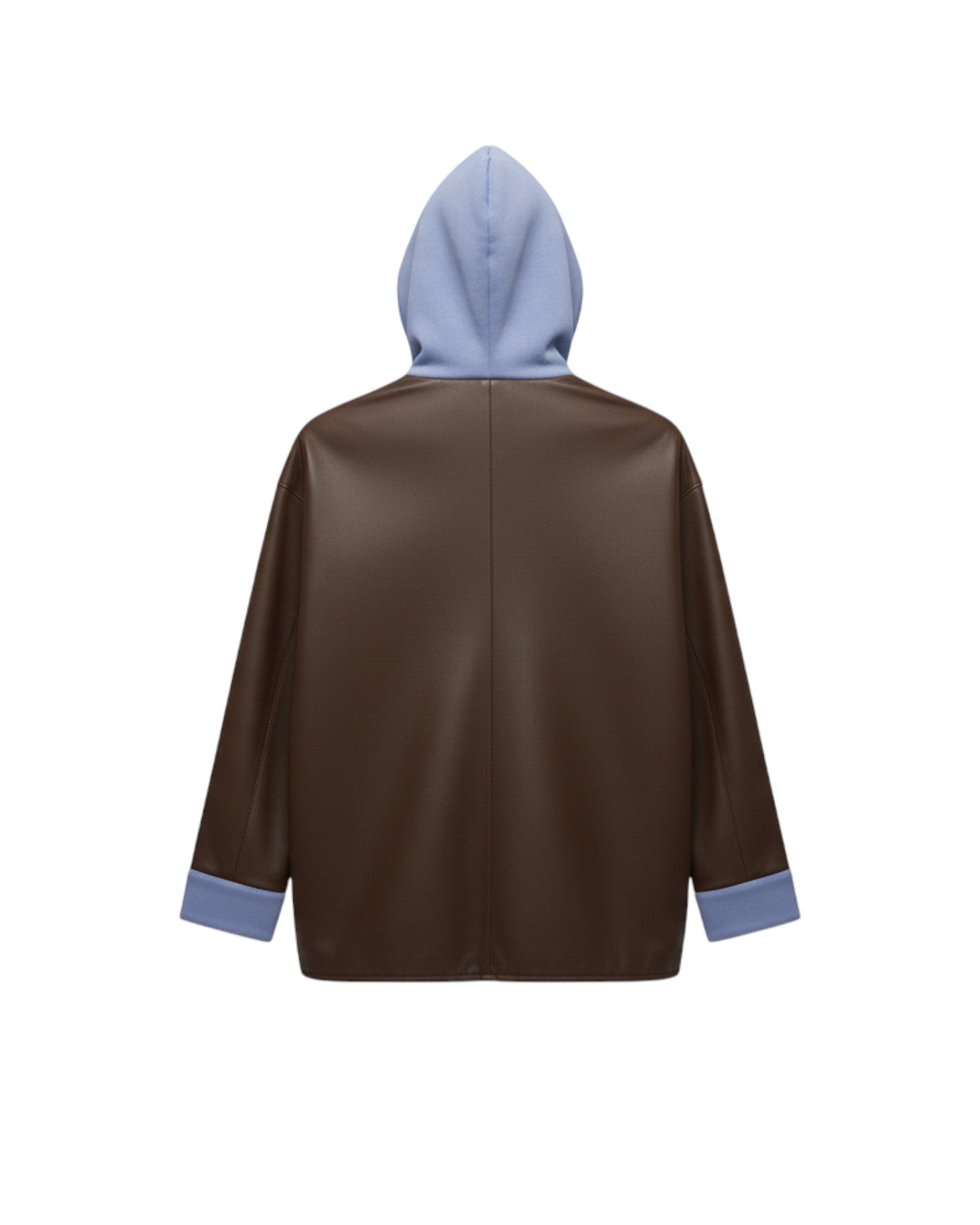 Crafted from supple faux leather, this hoodie features a comfortable cotton jersey lining in the hood and cuffs. Designed for easy layering with a comfortable fit.